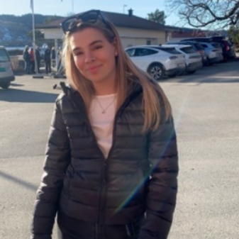Jeg er en 19 år gammel pliktoppfyllende, ansvarsfull og omsorgsfull jente. På fritiden liker jeg å bruke tiden min sammen med venninner, familie og på trening.